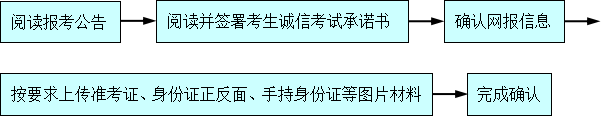 考生须于上述规定时间通过网上确认平台完成本人的“核对网报信息、上传本人图像照片、上传身份证照片、上传手持身份证照片及其它相关材料照片”等手续,否则网上报名信息无效。逾期不再受理。