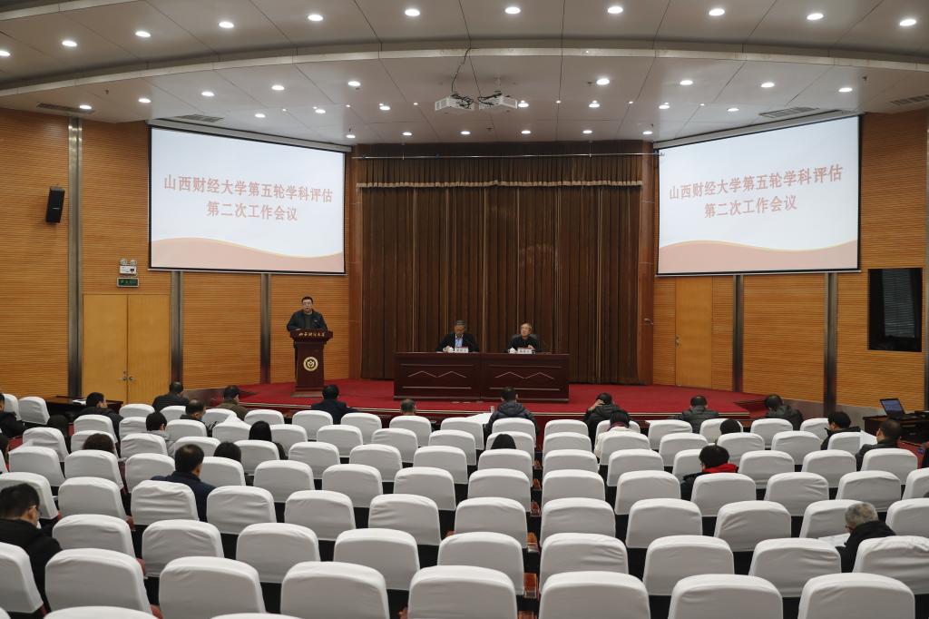 在国际学术交流中心报告厅召开第五轮学科评估第二次工作会议,会议由刘维奇校长主持,各学院党委书记和院长、各参评学科带头人以及评估工作领导组全体成员参会。