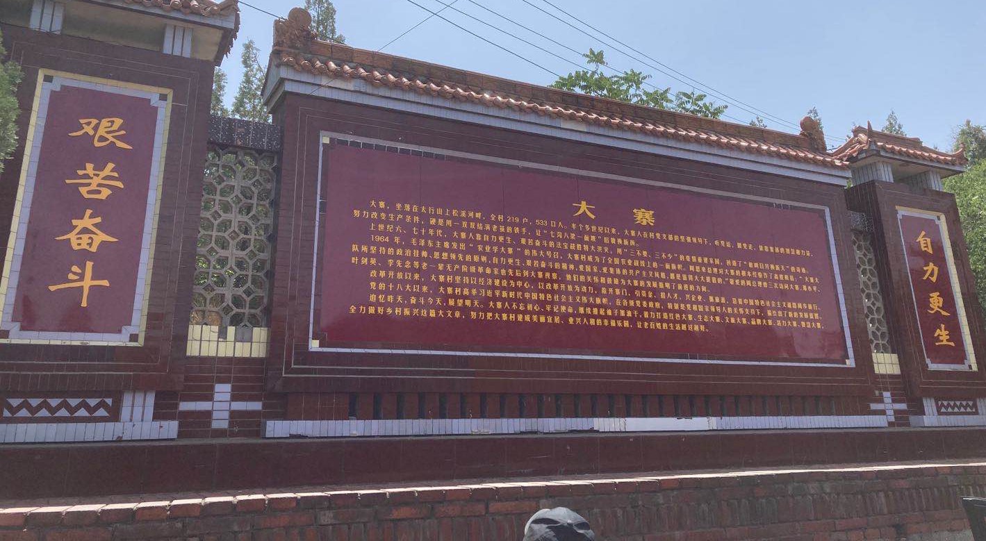上午八点,党支部全体成员满怀着对历史的追忆和先辈的敬仰,乘车从坞城校区出发,历经两个半小时,终于到达了大寨村。大寨村是山西省昔阳县的一个小山村。解放前,大寨的自然条件十分恶劣,是个穷山村,解放后,在陈永贵,郭凤莲的领导下,大寨人经过了艰苦卓绝的奋斗,彻底改变了山村落后的面貌。1964年中央发出了"农业学大寨"的号召,从而成为全国农业的一面旗帜。大家步行穿过虎头山,参观周恩来纪念亭,瞻仰陈永贵墓园、郭沫若纪念碑,越过团结沟渡槽,并观摩了大寨展览馆,认真聆听导游讲解大寨今昔变化和发展情况,真切领略了陈永贵等一批老共产党人的风采以及大寨人的艰苦创业史。